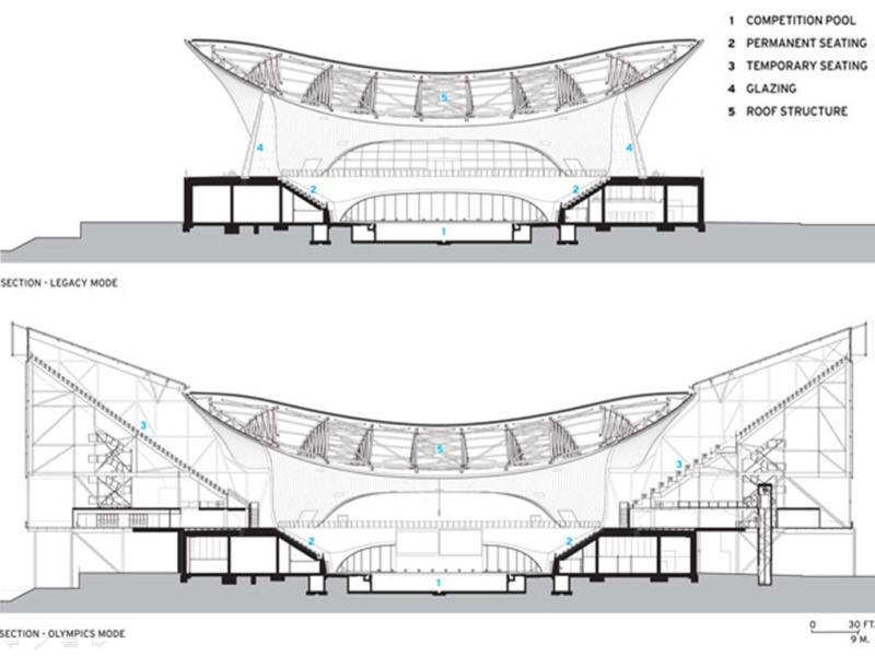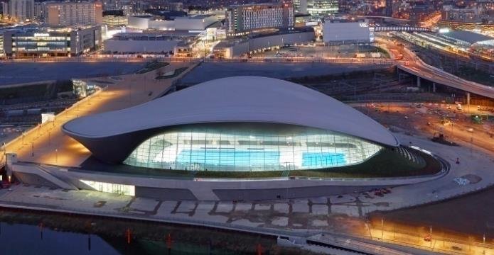 1.مرکز ورزشهای آبی لندن (London Aquatics Centre) - لندن، انگلستان: این ساختمان برای بازیهای المپیک ۲۰۱۲ لندن طراحی شده است و با سقف موجدار خود شناخته میشود.