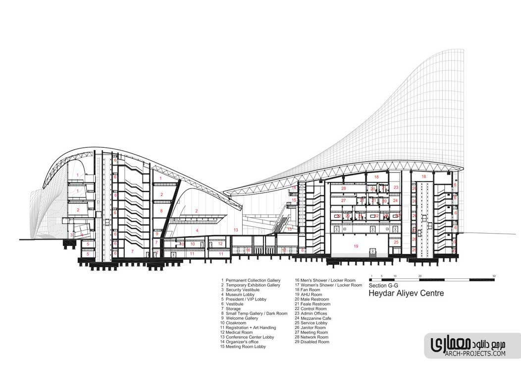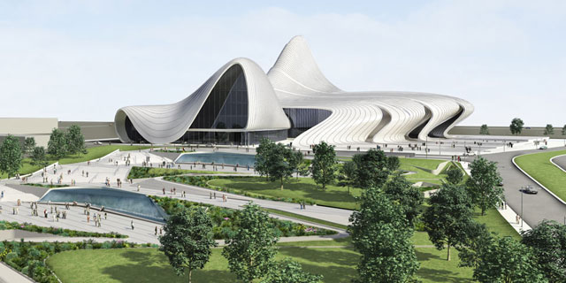 2.مرکز حیدر علیاف (Heydar Aliyev Center) - باکو، آذربایجان: این مرکز فرهنگی با فرمهای منحنی و پویای خود یکی از برجستهترین آثار حدید محسوب میشود.